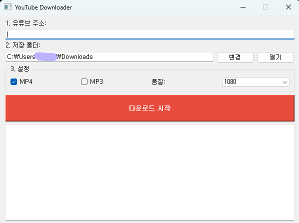 이전 게시글 파이썬 PyQt5로 만드는 나만의 유튜브 동영상 다운로더 제작기에서 만든 프로그램을 조금 수정하였다.